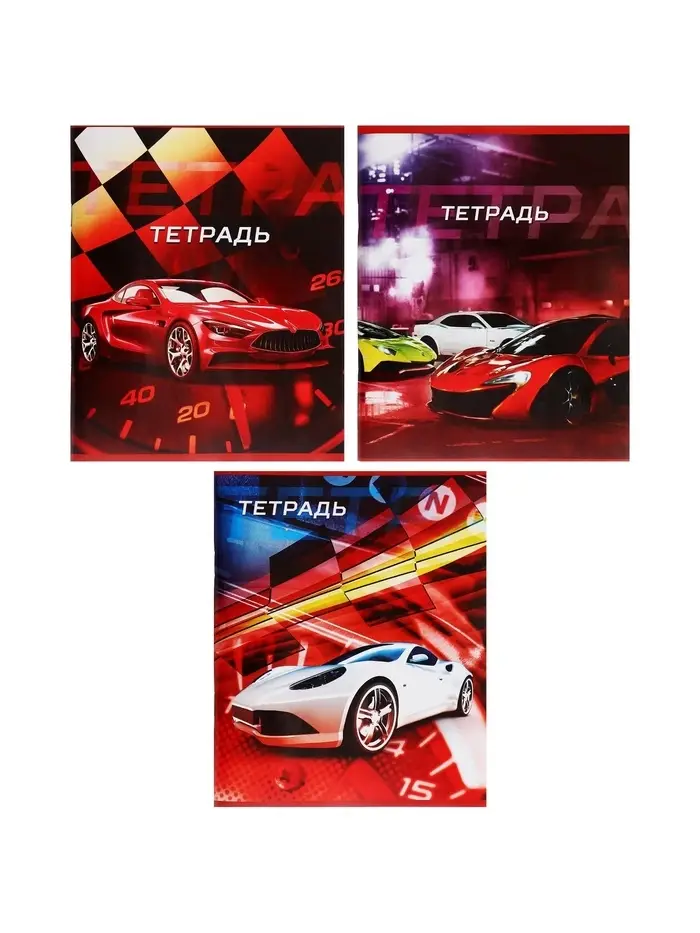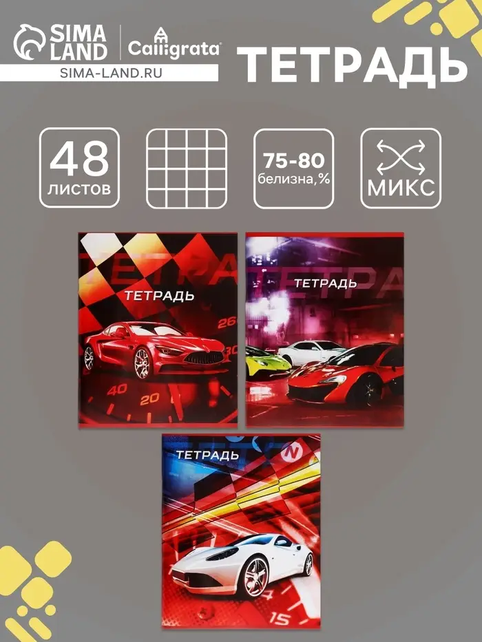 Тетрадь 48 листов в клетку, Calligrata «Авто», обложка мелованная бумага, серые листы, МИКС