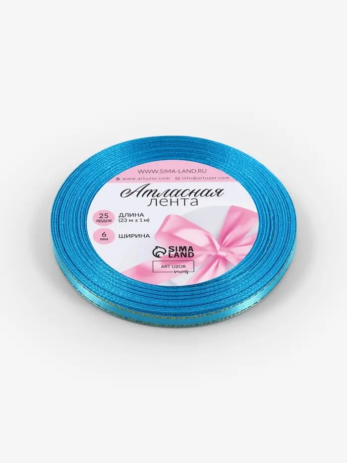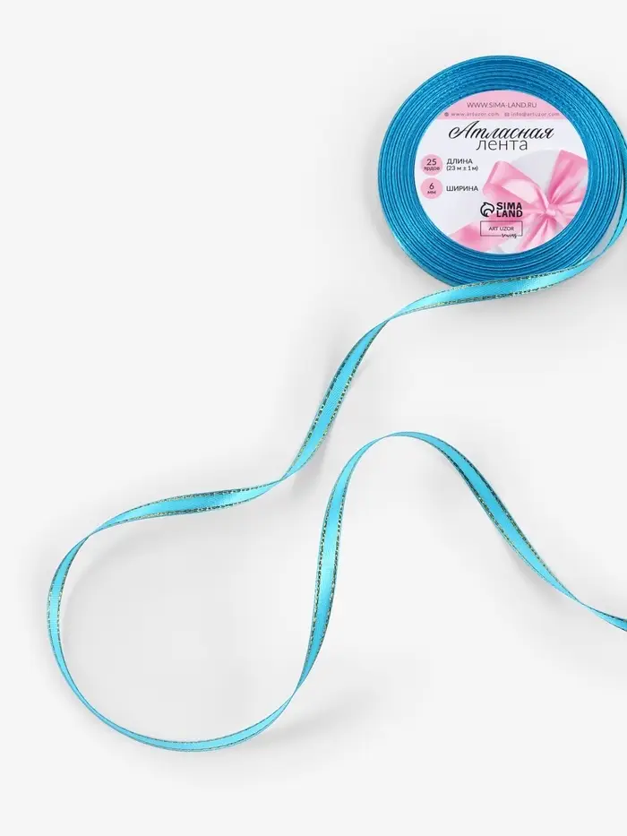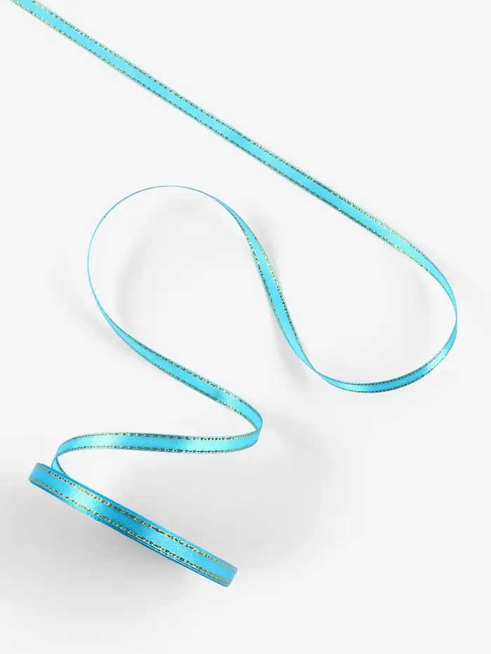 Лента атласная, с золотым люрексом, 6 мм, 23±1 м, голубая №020