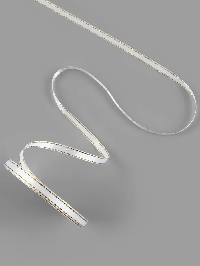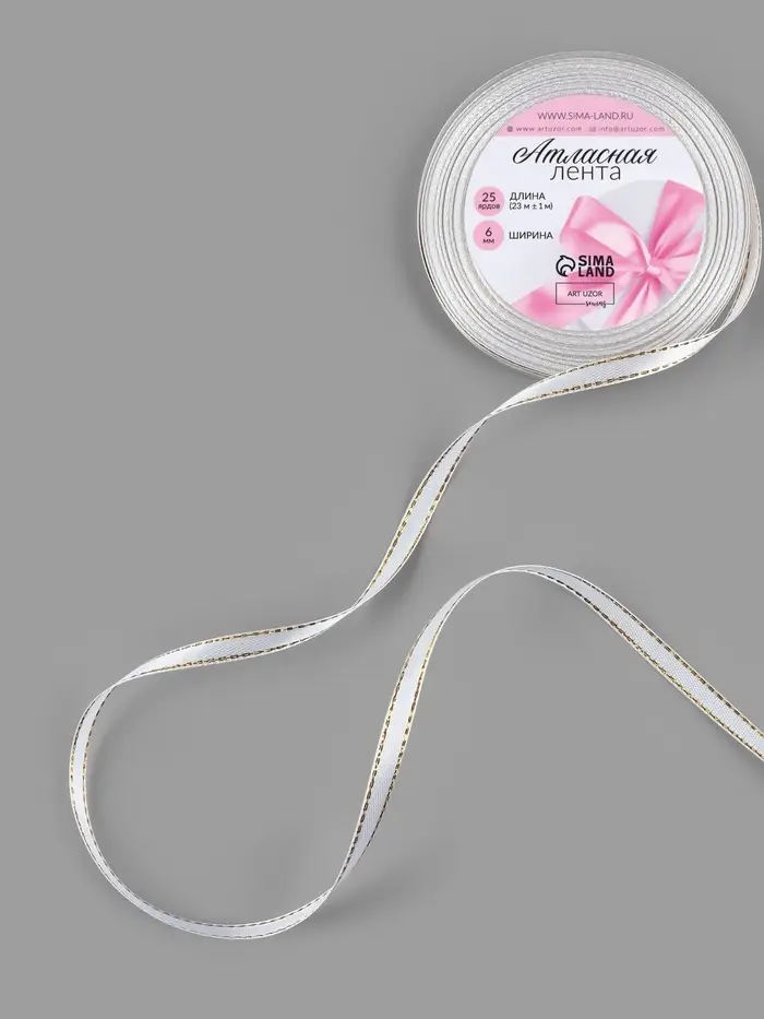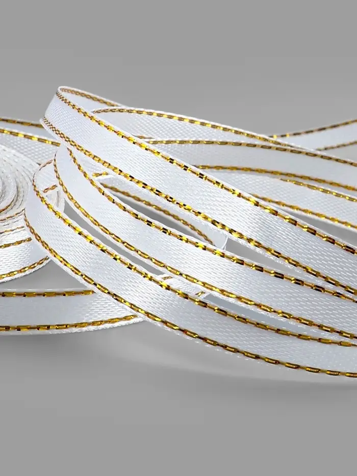 Лента атласная, с золотым люрексом, 6 мм, 23±1 м, белая №001