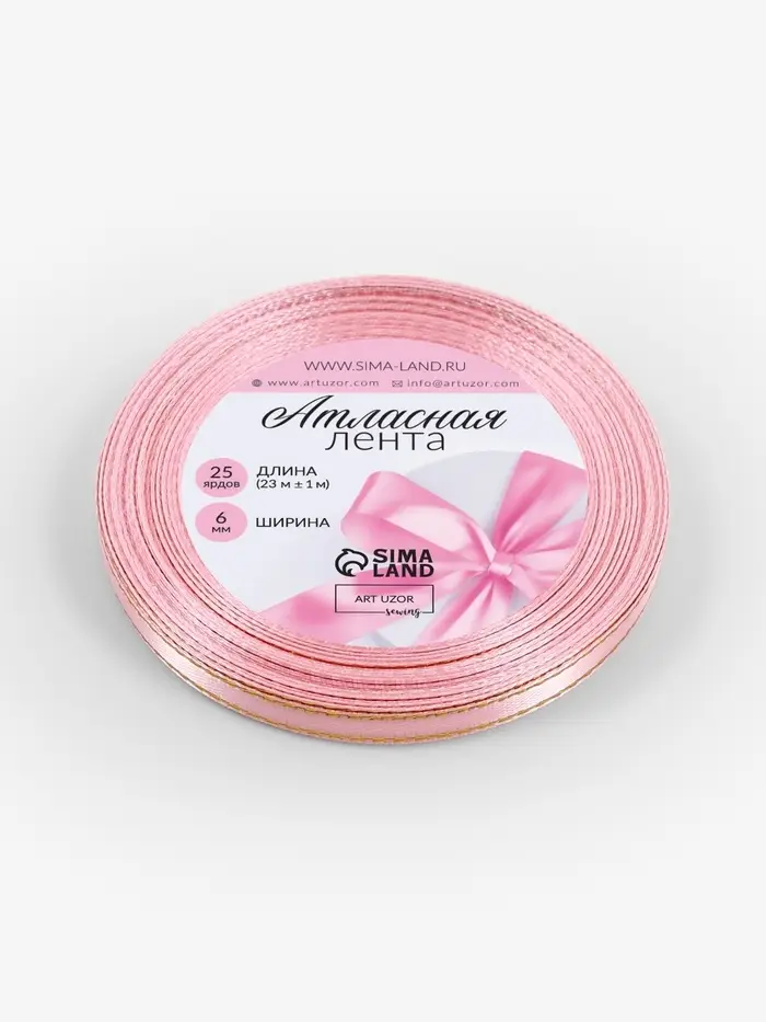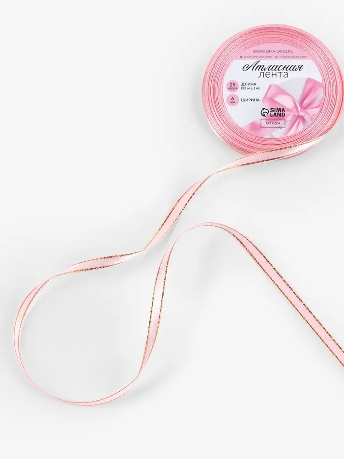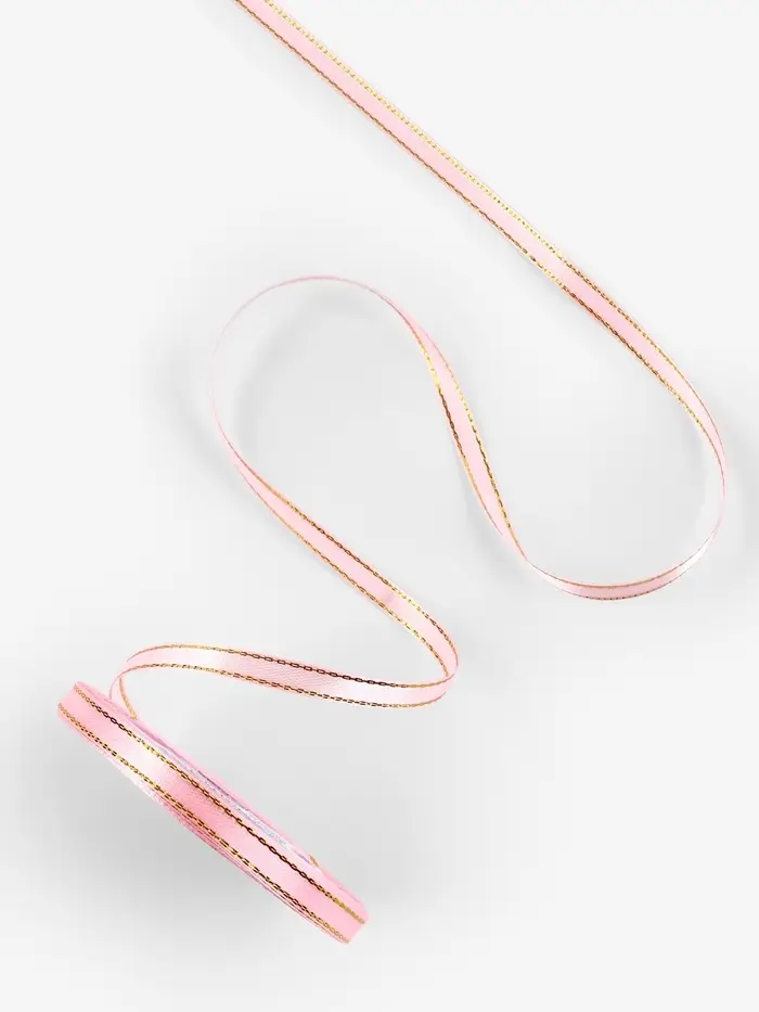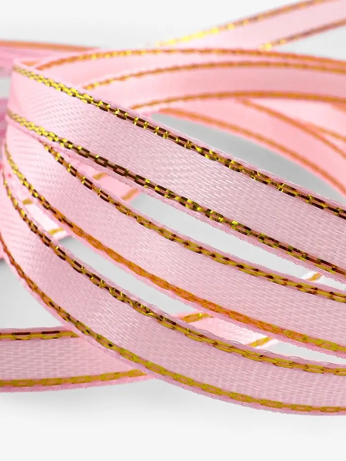 Лента атласная, с золотым люрексом, 6 мм, 23±1 м, розовая №04