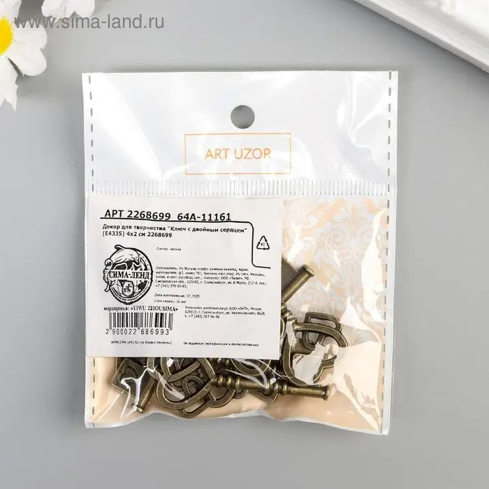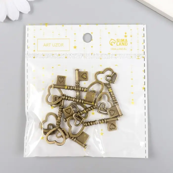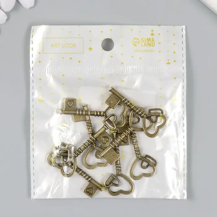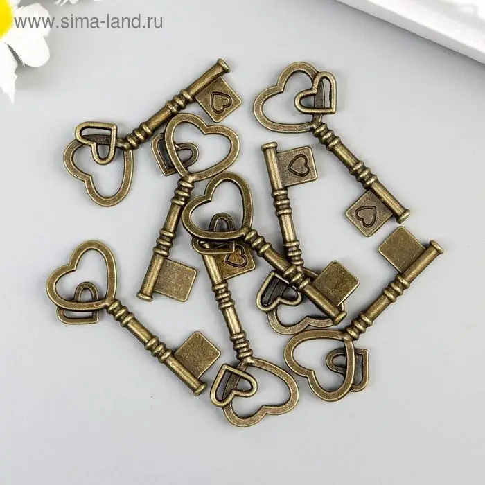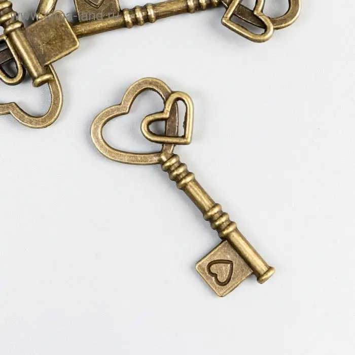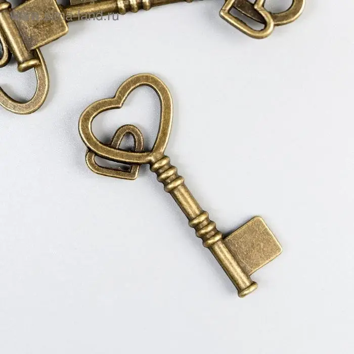 Декоративный элемент для творчества «Арт Узор. Ключ с двойным сердцем», металл под латунь, 4×2 см