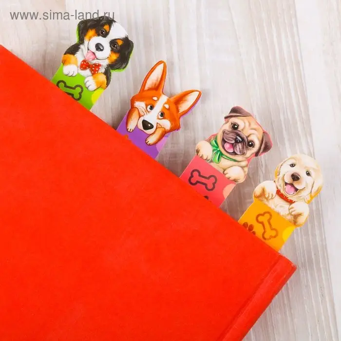 Закладки фигурные, картонные 5 шт «Забавные песики!»