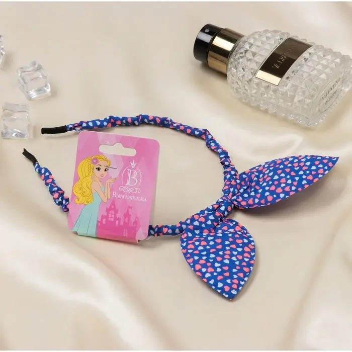 Ободок для волос «Веселые ушки», сердечки, синий