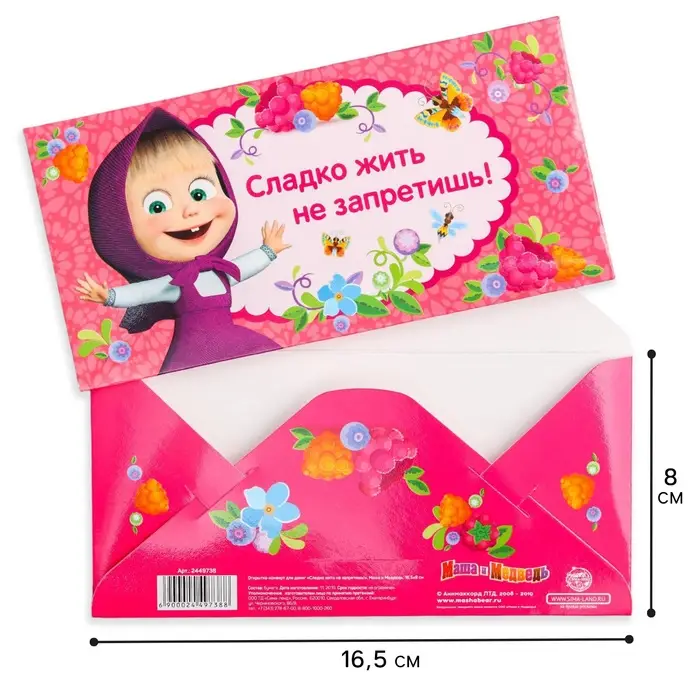 Конверт для денег, 16.5 х 8 см «Сладко жить не запретишь!», Маша и Медведь