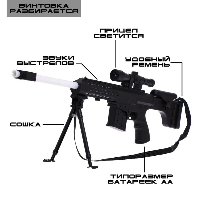 Винтовка «Снайпер», свет, звук, работает от батареек