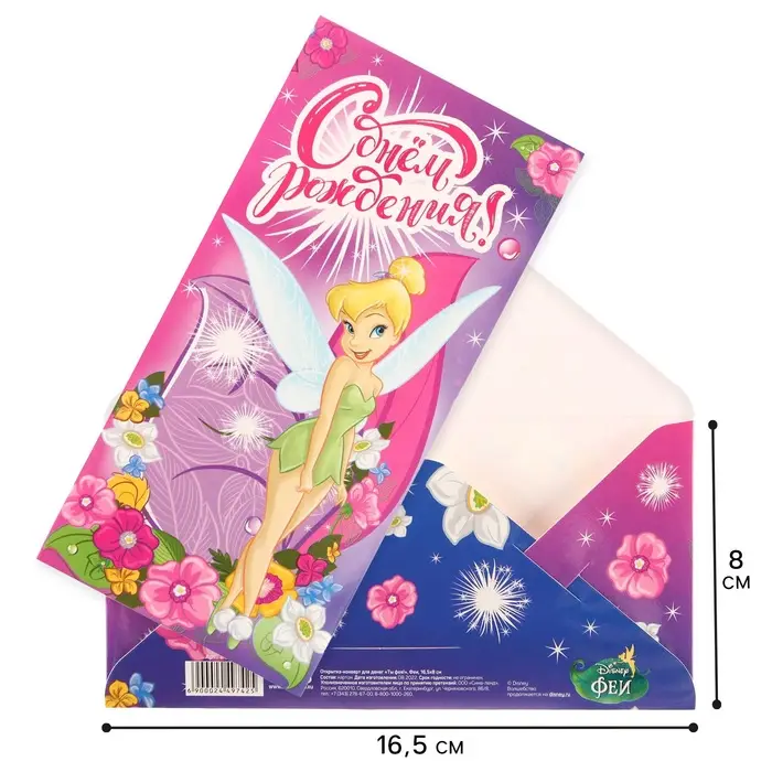 Конверт для денег, 16.5 х 8 см «С днём рождения», Феи