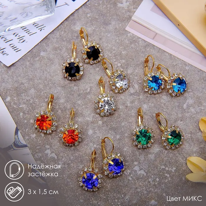 Серьги со стразами «Круг» вечеринка, крупный, миксы