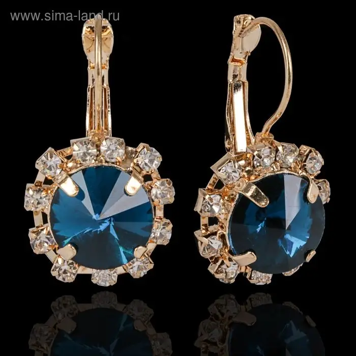 Серьги со стразами «Сердце» мерцание, цвет синий в серебре