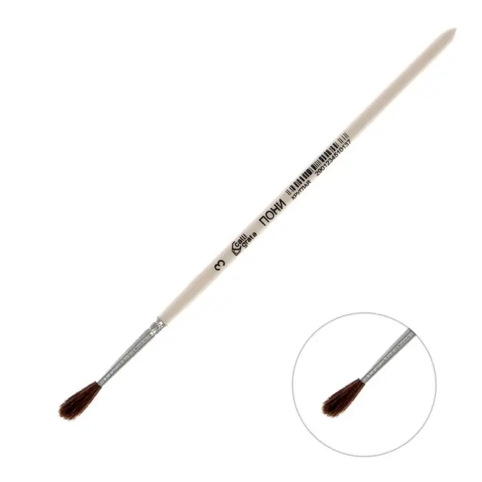Кисть для рисования, Пони круглая № 3 (диаметр обоймы 3 мм; длина волоса 16 мм), деревянная ручка, Calligrata