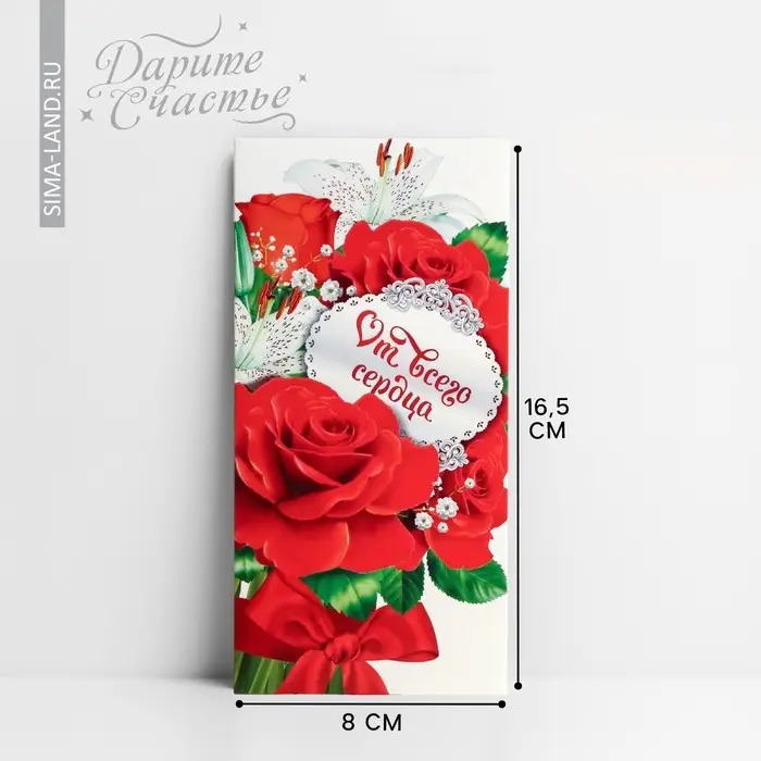 Конверт для денег "От всего сердца" красные розы, белые лилии, 16,5 х 8 см
