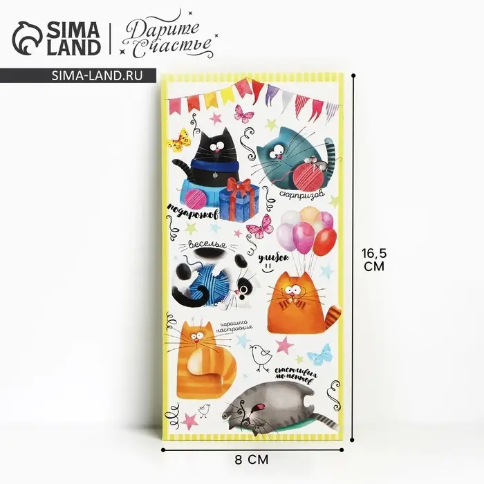 Конверт для денег «Котики», 16,5 × 8 см