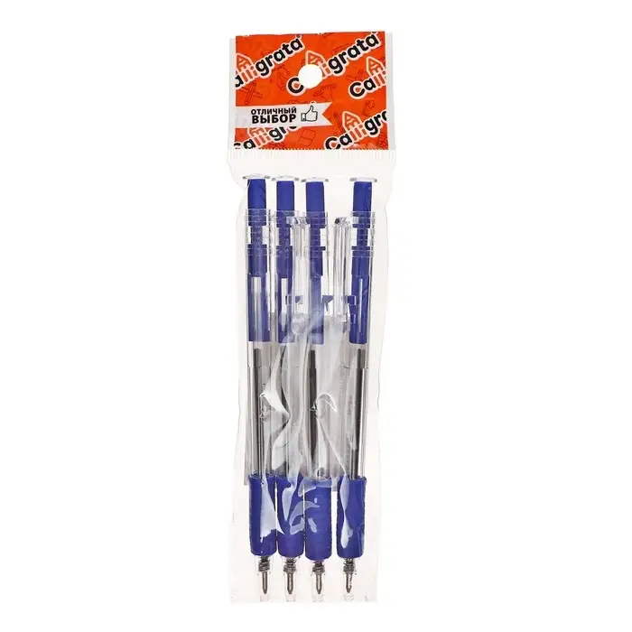 Набор шариковых ручек Calligrata, 4 штуки, автоматические, синий стержень, резиновый упор