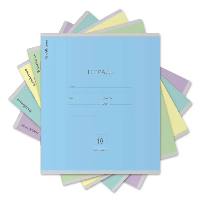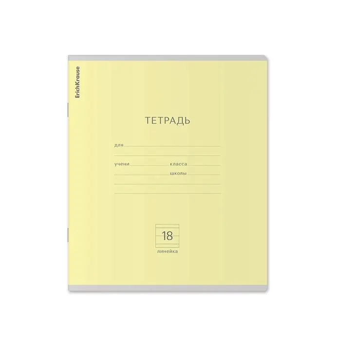 Тетрадь школьная ученическая формата А5+ (170 х 203 мм). Обложка из высококачественного мелованного картона плотностью 180 г/м2. В блоке 18 листов в линейку с полями. Бумага офсетная плотностью 60 г/м2. Цвет линовки - синий. Скругленные уголки обложки и блока. Тип скрепления - скоба. Тетради одного цвета упакованы в термоусадочную пленку по 10 штук. Товар поставляется в нескольких вариантах цвета без возможности выбора.