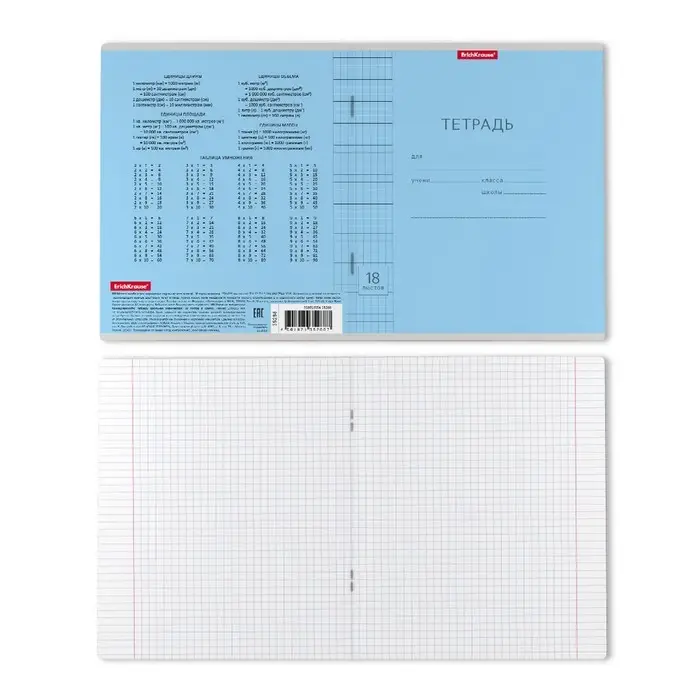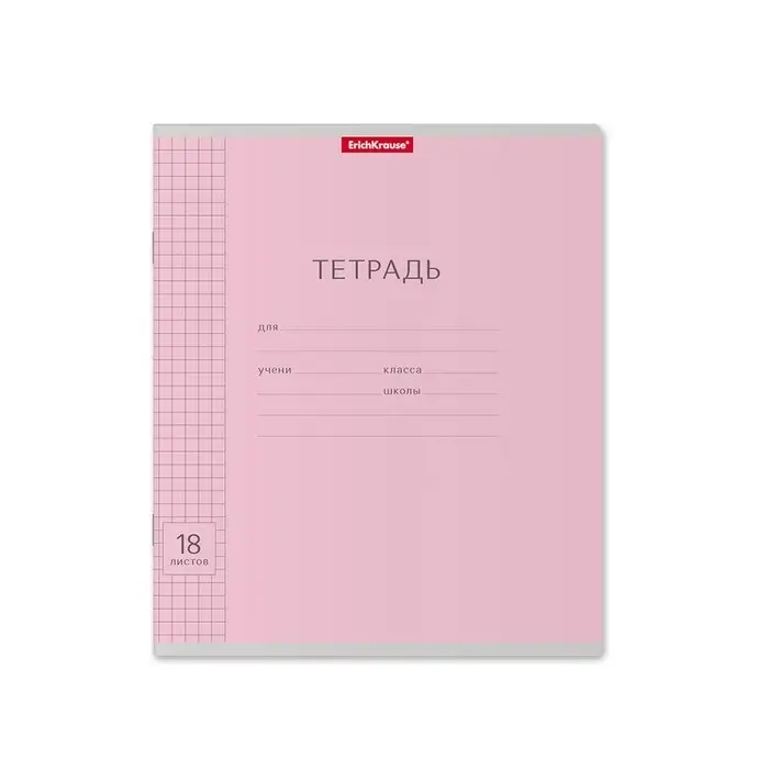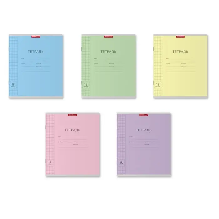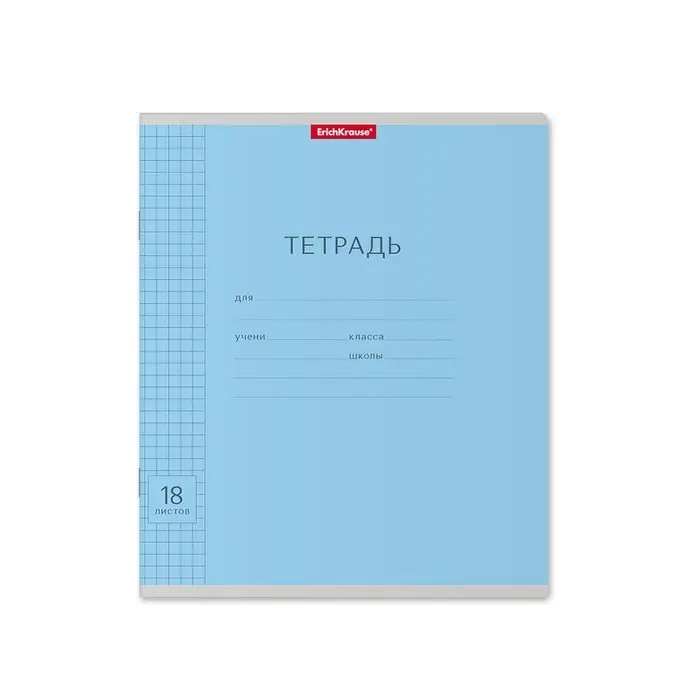 Тетрадь школьная ученическая формата А5+ (170 х 203 мм). Обложка из высококачественного мелованного картона плотностью 180 г/м2. В блоке 18 листов в клетку с полями. Бумага офсетная плотностью 60 г/м2. Цвет линовки - синий. Скругленные уголки обложки и блока. Тип скрепления - скоба. Тетради одного цвета упакованы в термоусадочную пленку по 10 штук. Товар поставляется в нескольких вариантах цвета без возможности выбора.