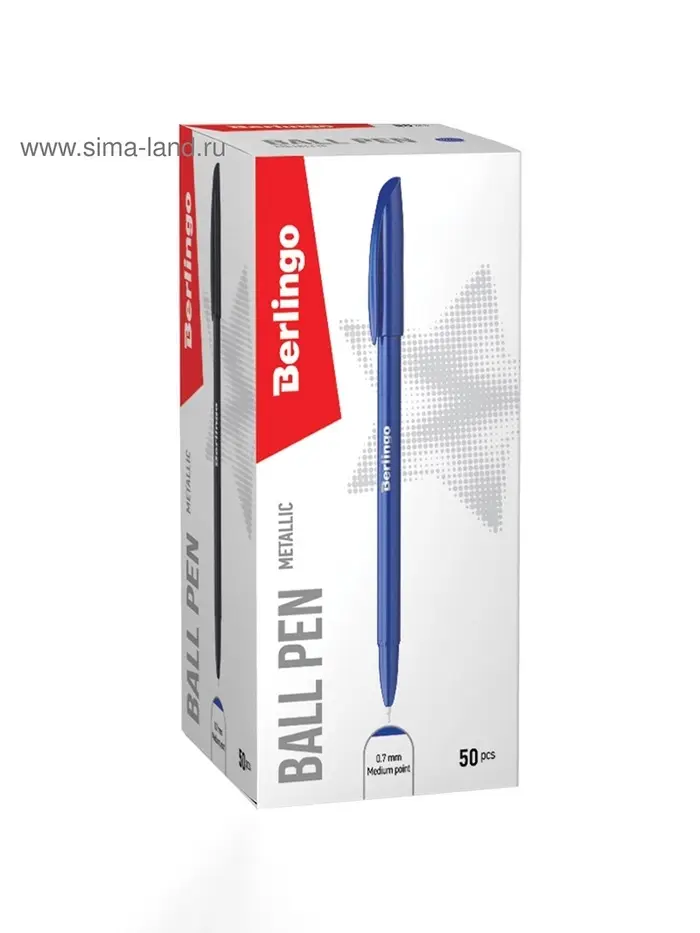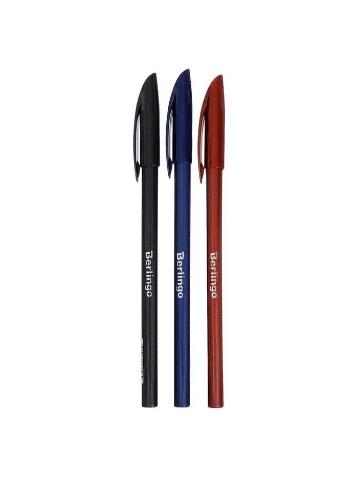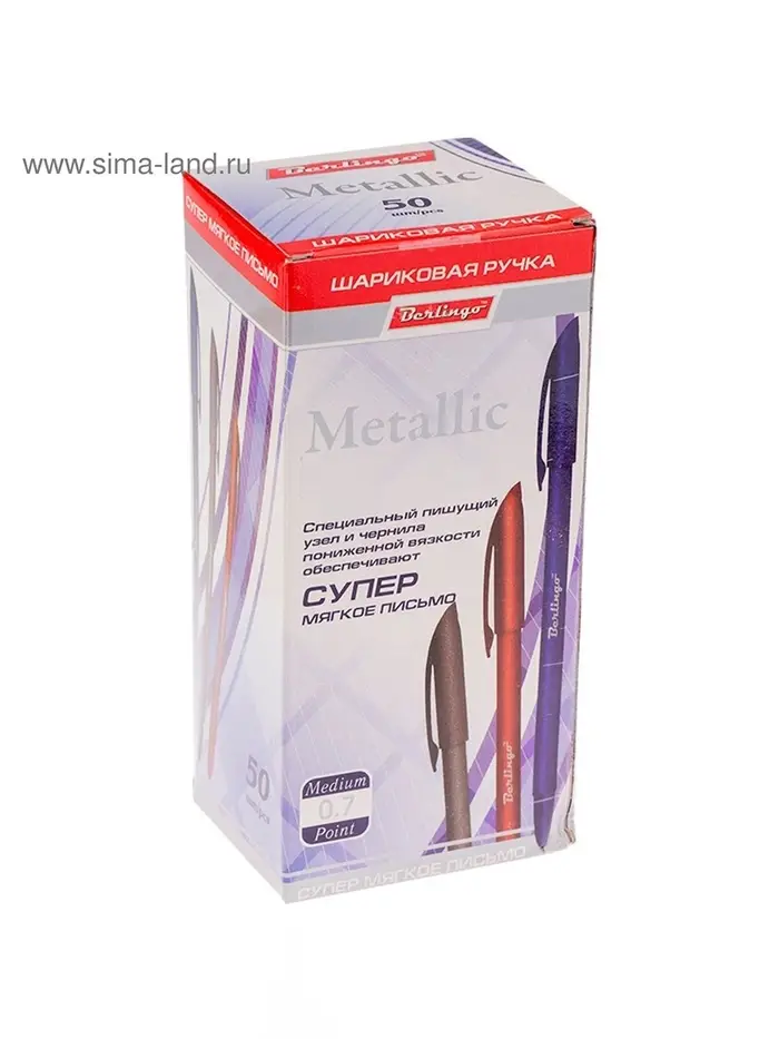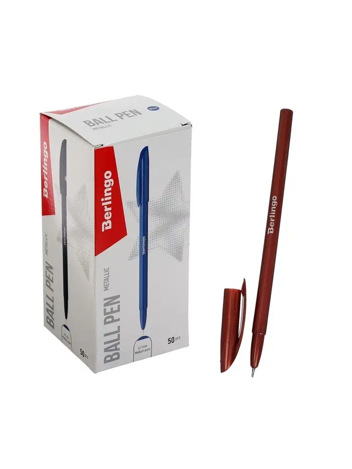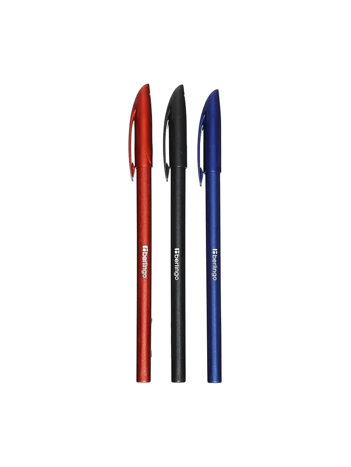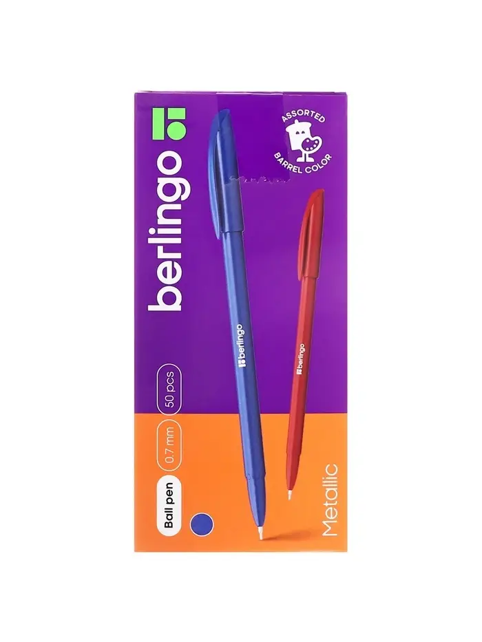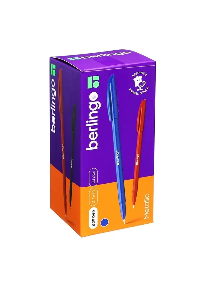 Одноразовая шариковая ручка Berlingo Metallic представлена в 3-х благородных насыщенных цветах с эффектом металлик: синего, красного и чёрного. У ручки есть вентилируемый колпачок, который обеспечивает безопасность при использовании детьми, и пластиковым клипом, позволяющим закрепить ручку, например, на блокноте. Специальный пишущий узел и чернила пониженной вязкости обеспечивают супермягкое письмо. Цвет чернил – синий. Диаметр пишущего узла составляет 0,7 мм, благодаря чему ручка идеально подходит для быстрого стиля письма. Толщина линии письма 0,5 мм, а длина линии письма – 950 м. Цвет чернил: синий, Толщина линии письма: 0,5 мм, Длина письма: 950 м, Цвет корпуса: микс из 3-х цветов.