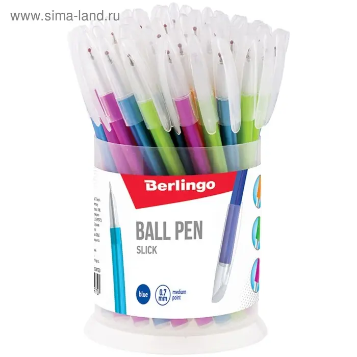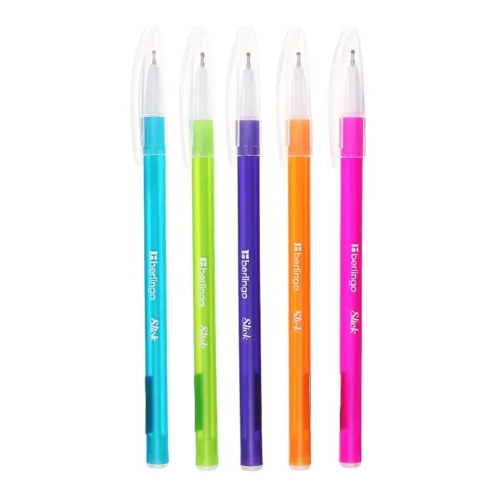 Шариковая ручка Berlingo Slick с актуальным минималистичным дизайном придётся по душе тем, кто ценит лаконичность и яркие акценты. Ручка оснащена вентилируемым колпачком, который безопасен при использовании детьми. Пластиковый клип позволяет разместить ручку в любом удобном месте, например, на тетради или блокноте. Диаметр пишущего узла составляет 0,7 мм, благодаря чему ручка прекрасно подходит для любого стиля письма. Уникальная запатентованная технология Smart Ink обеспечивает лёгкое и приятное письмо без усилий за счёт чернил пониженной вязкости, специальной конструкции пишущего узла и инновационных материалов шарика. Технология Smart Ink, Цвет чернил: синий, Толщина линии письма: 0,5 мм, Длина письма: 950 метров, Цвет корпуса: микс из 5-ти цветов.