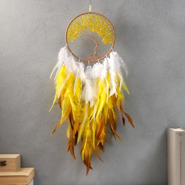 Ловец снов "Дерево" жёлтый d=16 см 70х16 см