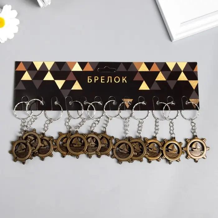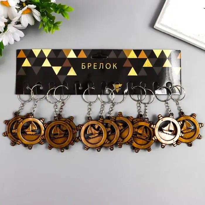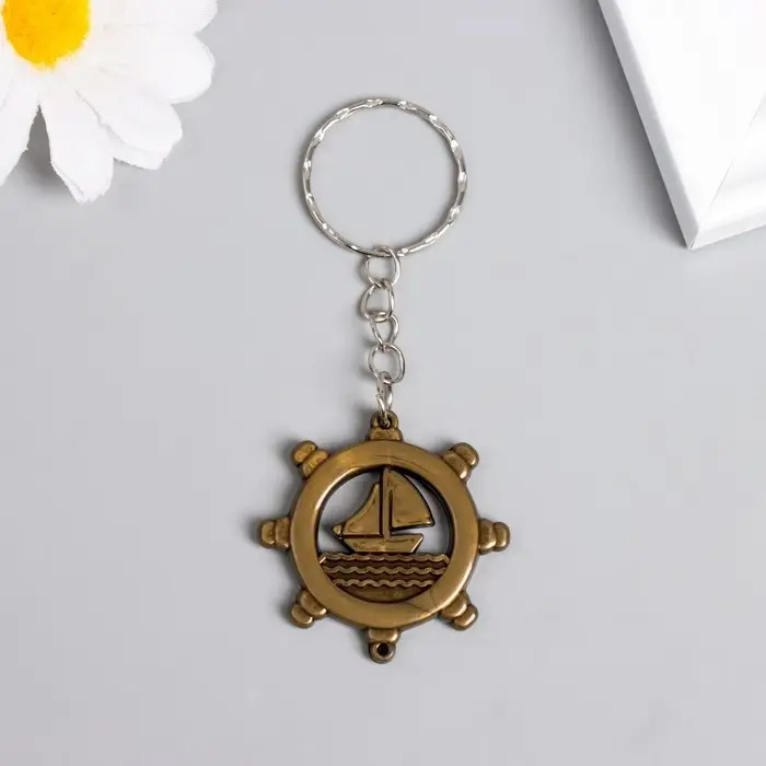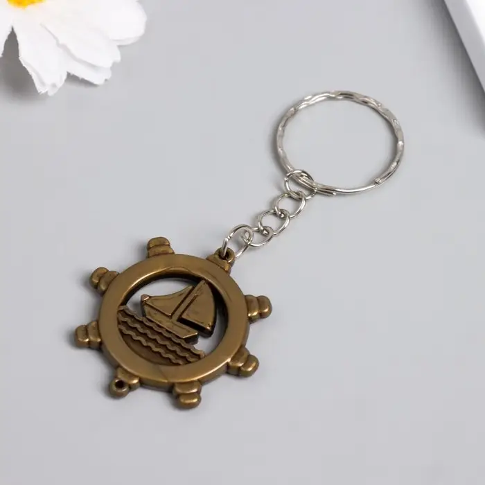 Брелок для ключей на кольце «Корабль в штурвале», пластик под металл, 3.8×3.8 см