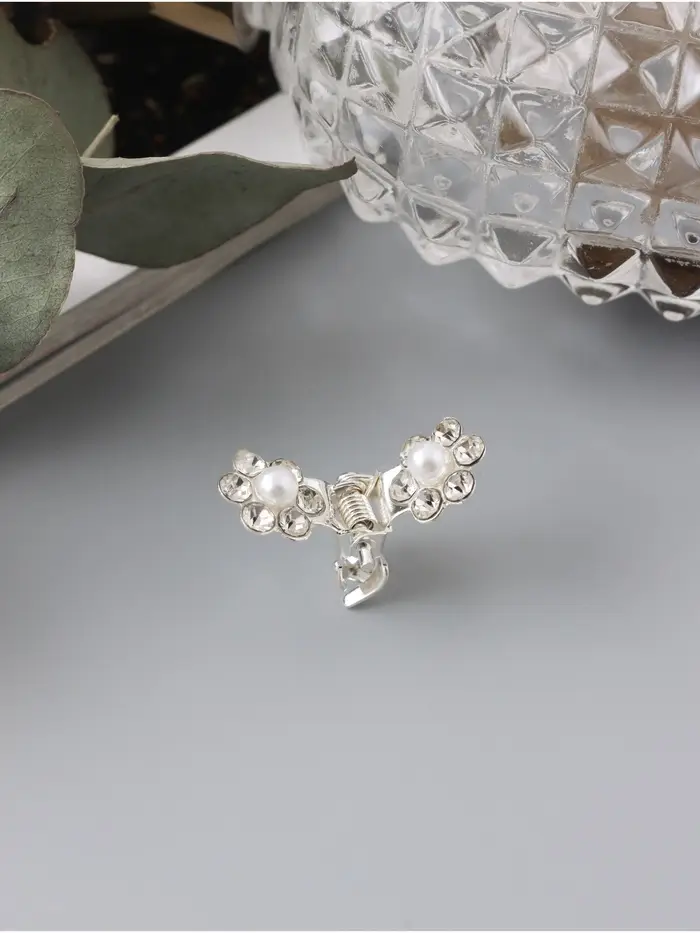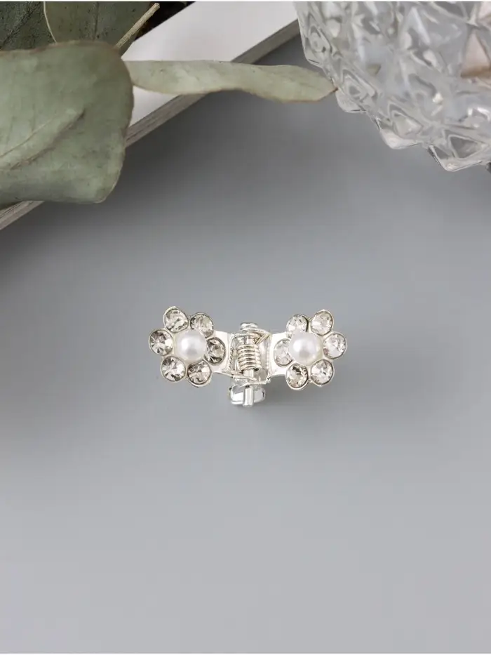 Крабик для волос«Мини», блеск цветок, 1 см, серебро