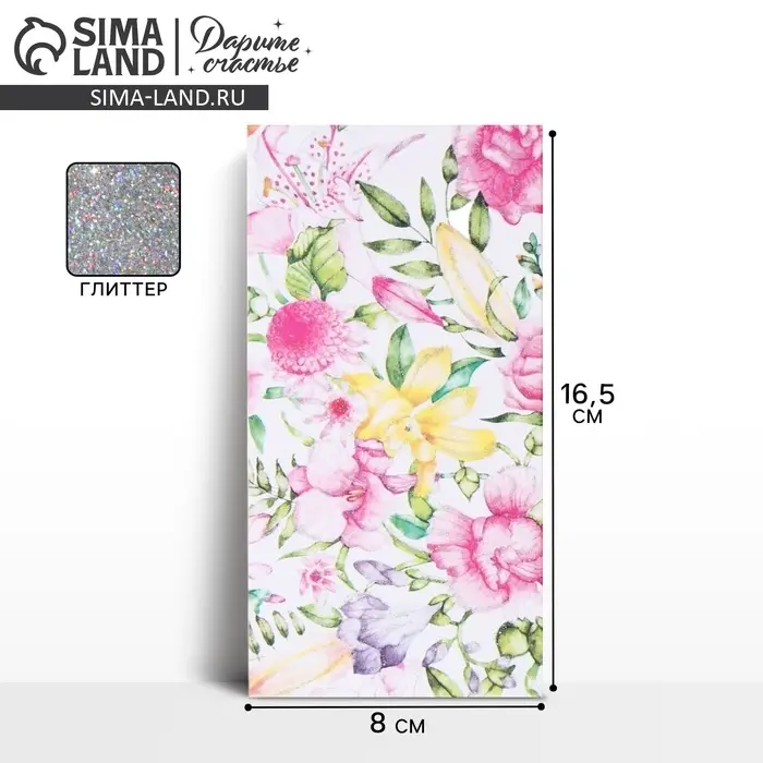 Конверт для денег «Цветочная композиция», глиттер, 16.5 х 8 см