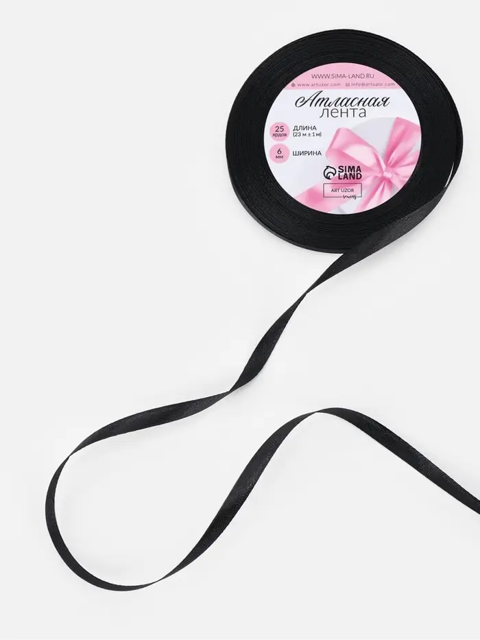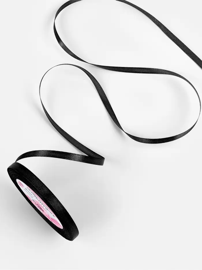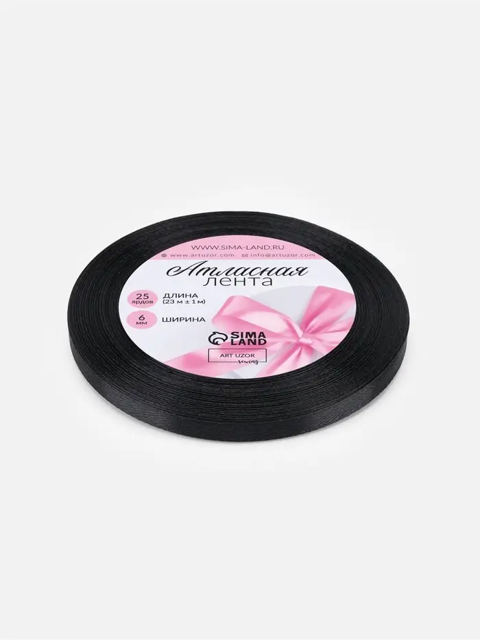 Лента атласная, 6 мм × 23 ± 1 м, цвет чёрный №39