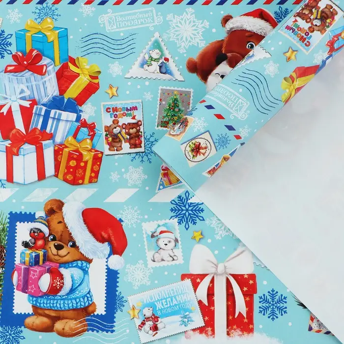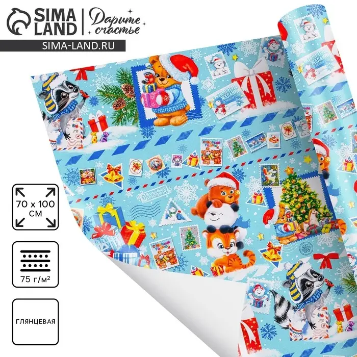 Упаковочная бумага на новый год «Письмо от Дедушки Мороза», 70 х 100 см, глянцевая