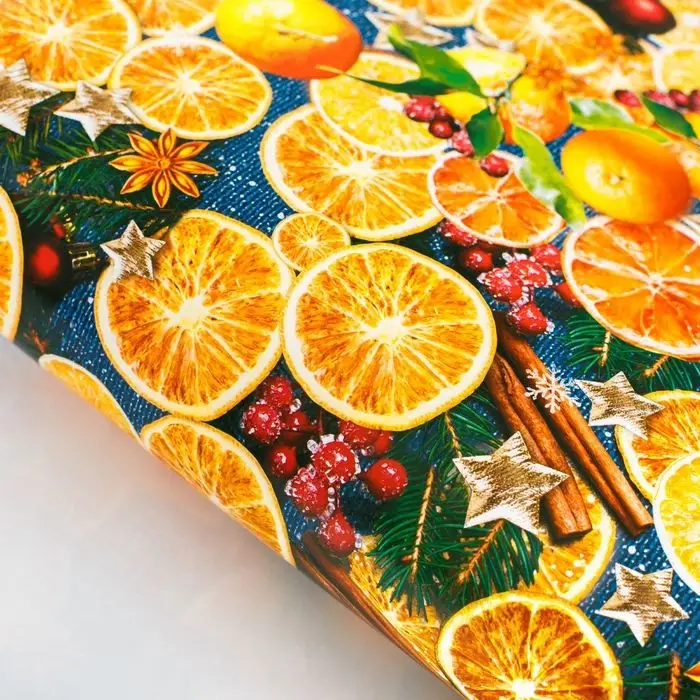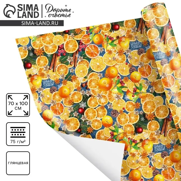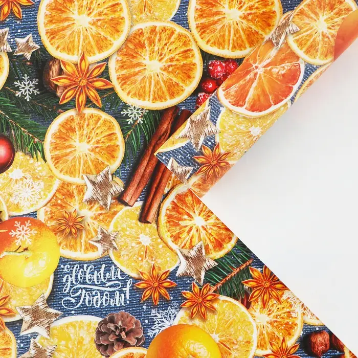 Упаковочная бумага на новый год «Пряные мандарины», 70 х 100 см, глянцевая