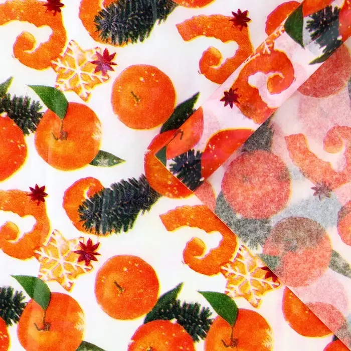 Упаковочная бумага на новый год тишью «Мандарины», 50 х 66 см
