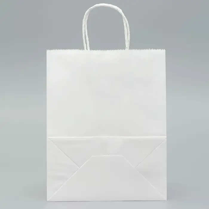 Пакет крафт без печати, белый, круглая ручка 22×12×28 см