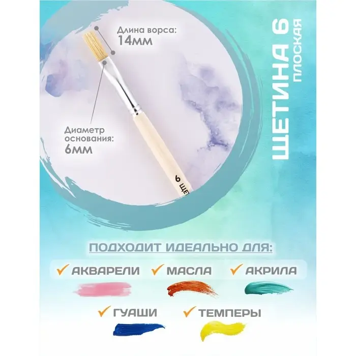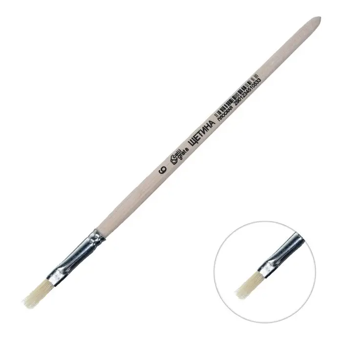 - Важным свойством является расщеплённый кончик, который способствует хорошей наполняемости кисти и ровному нанесению краски. Изделия предназначены для работ с "тяжёлыми красками": маслом, акрилом, темперой, гуашью. Натуральные кисти из щетины – отличный инструмент как для детского и школьного творчества, так для хобби и профессиональной живописи.