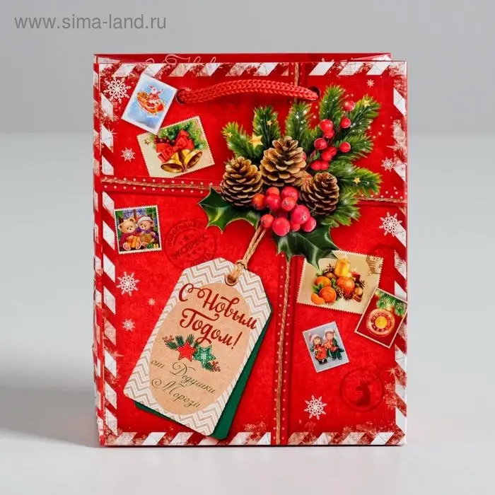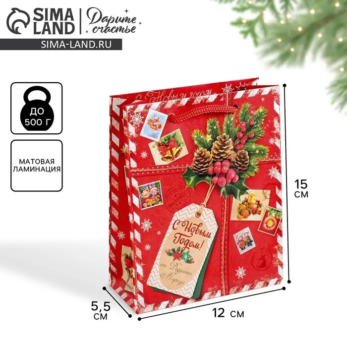 Пакет подарочный новогодний ламинированный «Подарок от Деда Мороза», 12 х 15 х 5.5 см