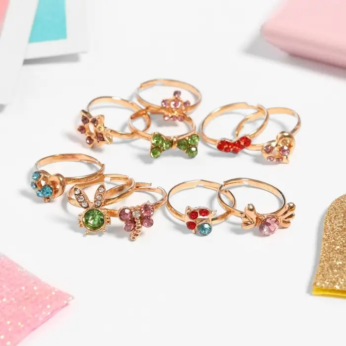 Кольцо детское «Выбражулька» ассорти для девочек, форма МИКС, цвет МИКС, безразмерное