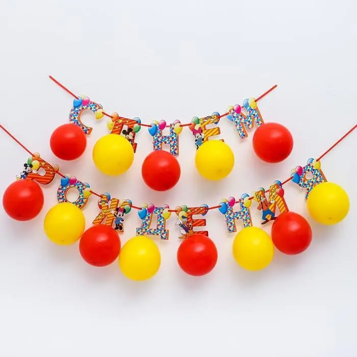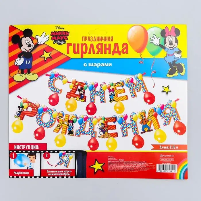 Гирлянда на ленте с воздушными шарами «С Днем Рождения!», длина 215 см, Микки Маус и друзья