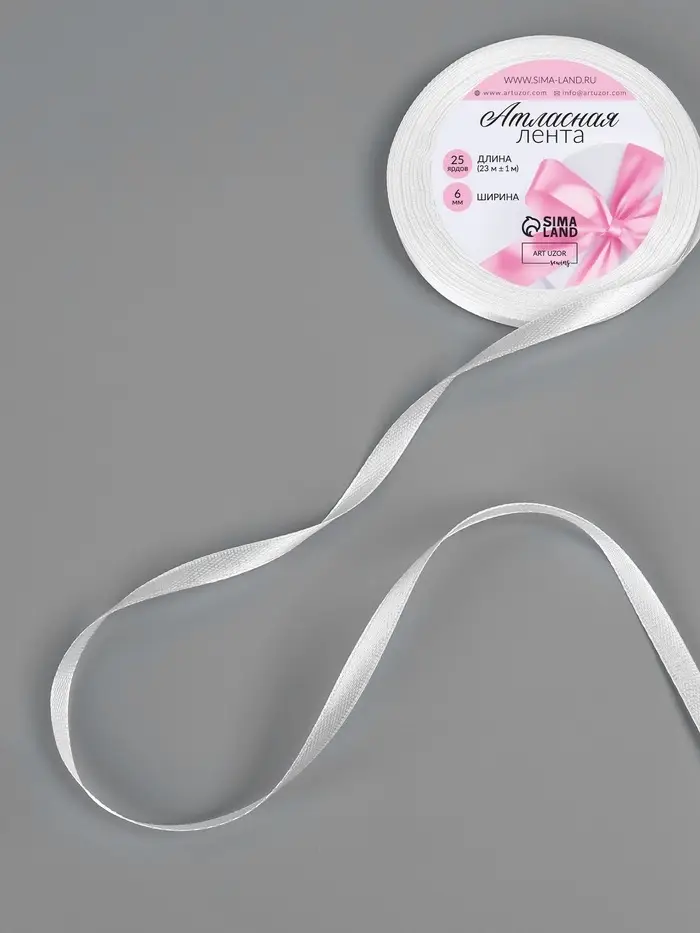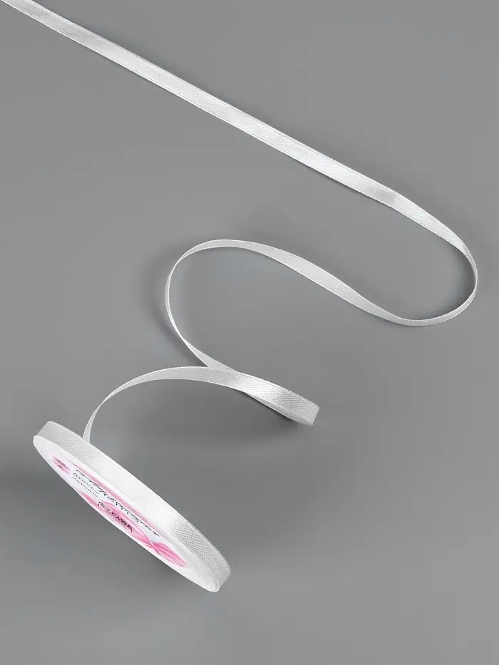Лента атласная, 6 мм, 23±1 м, белая №01