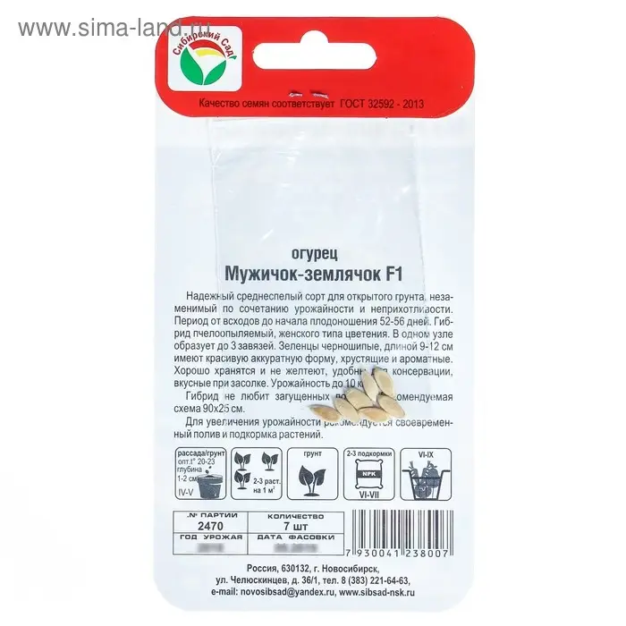 Семена Огурец "Мужичок-землячок" F1, пчелоопыляемый, 7 шт