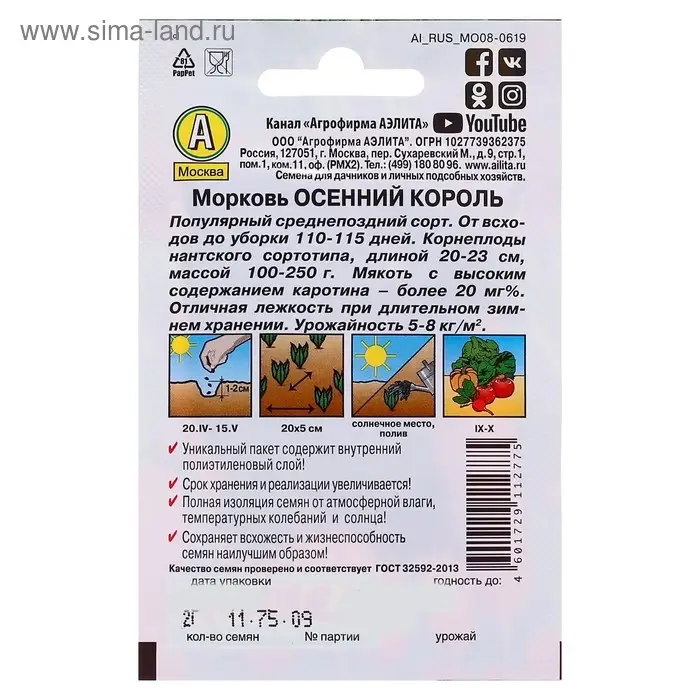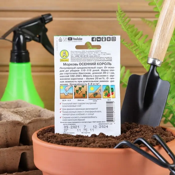 Благодаря внутреннему полиэтиленовому слою пакет не пропускает влагу и увеличивает срок годности семян до 2 лет.