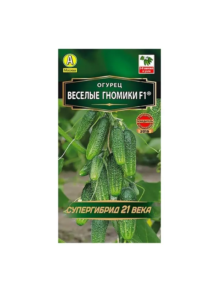 «Весёлые гномики» — высокоурожайный ультраскороспелый гибридный сорт огурцов для открытого грунта и плёночных теплиц. Растение формирует мелкобугорчатые плоды с белым опушением.