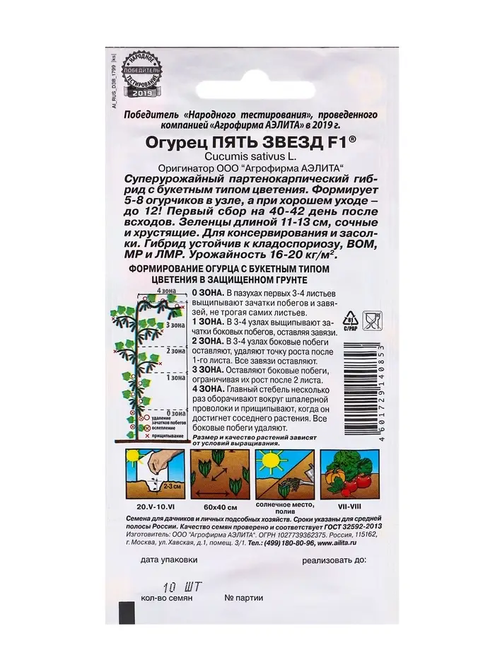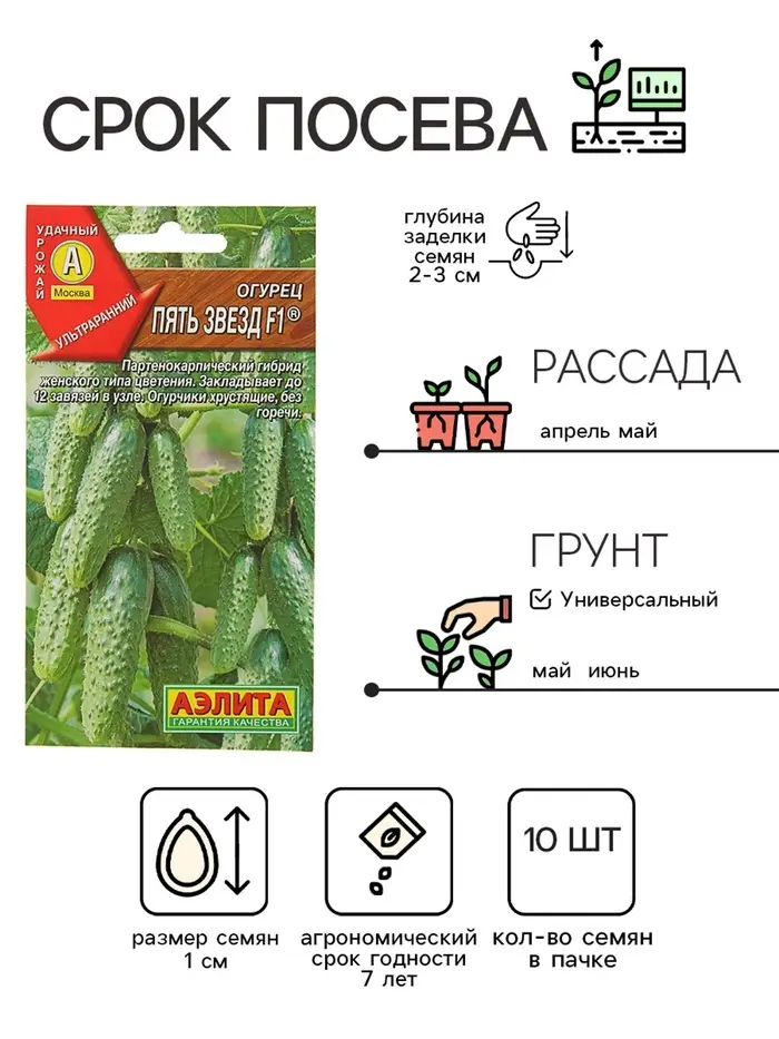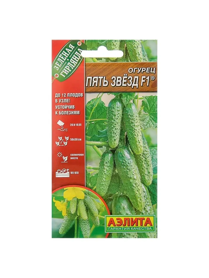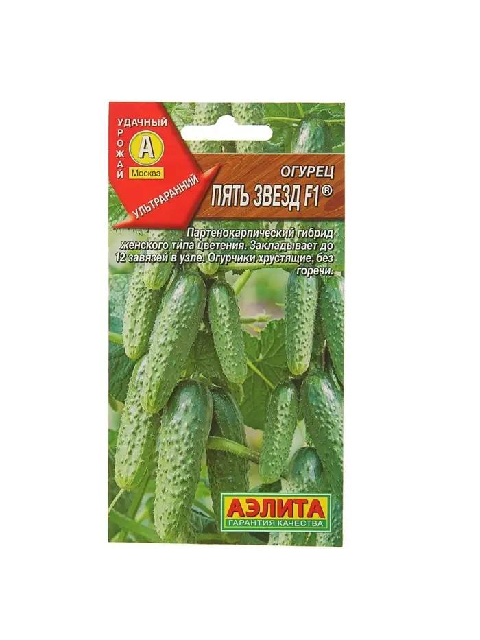Семена Огурец «Пять звезд F1», ультраранний, партенокарпический, 10 шт.