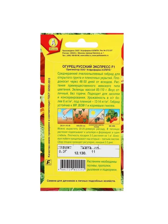 Семена Огурец "Русский экспресс" F1, среднеранний, пчелоопыляемый, 10 шт.