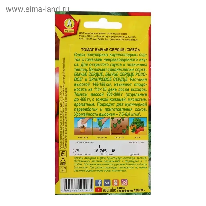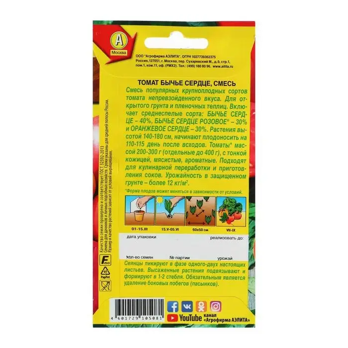 Семена Томат "Бычье сердце", смесь, 0,2 г