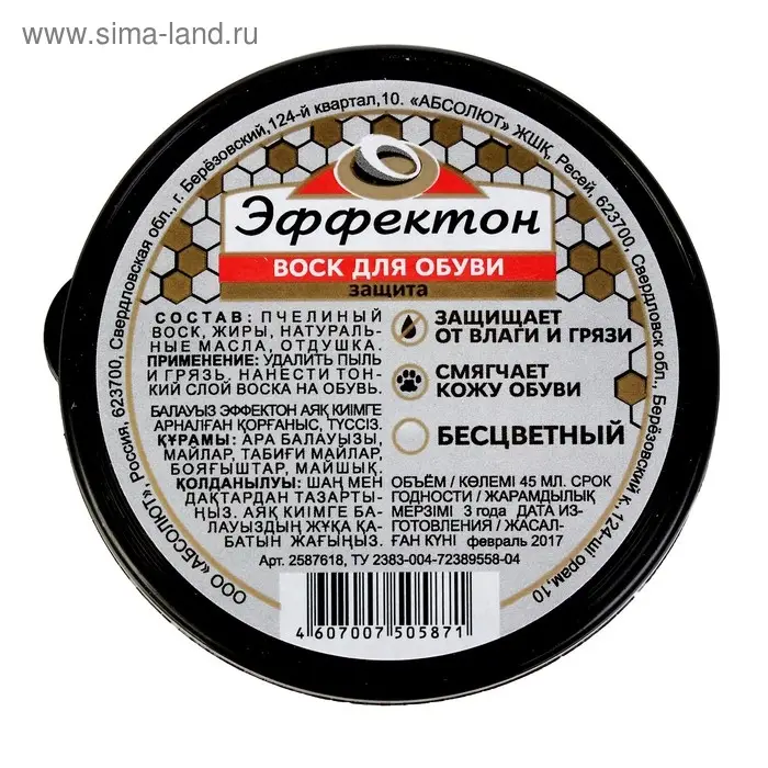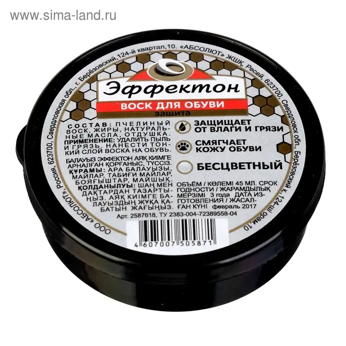 Воск для обуви Эффектон бесцветный, банка, 45 мл
