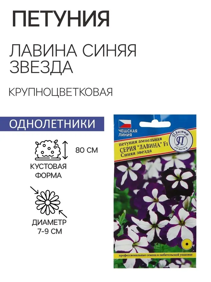 Семена цветов Петуния ампельная крупноцветковая "Лавина" Синяя звезда F1, О, драже 10 шт