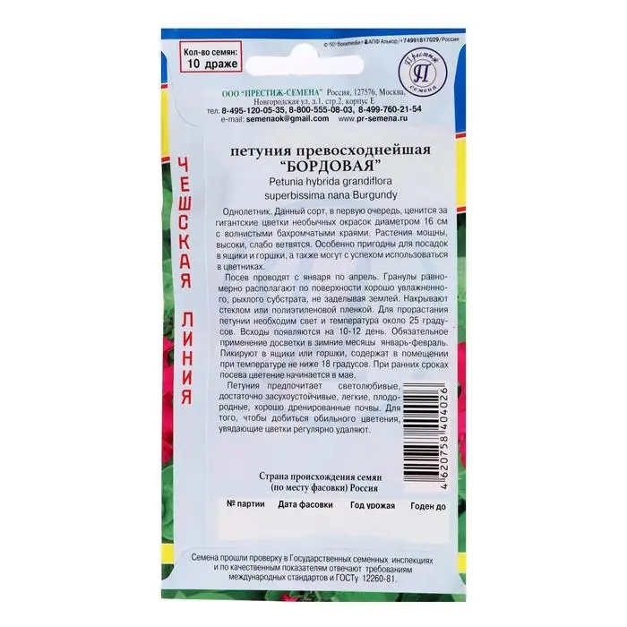 Семена цветов Петуния превосходнейшая "Бордовая", О, драже 10 шт