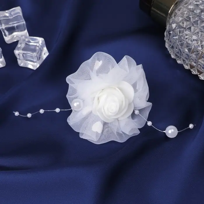 Резинка для волос бант «Школьница», роза, d=7 см, белая
