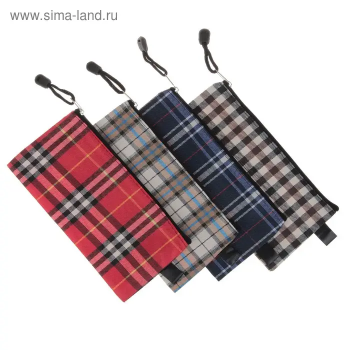 Папка-конверт "Шотландка" А65, на молнии, МИКС