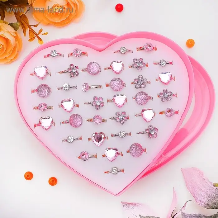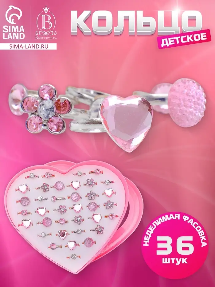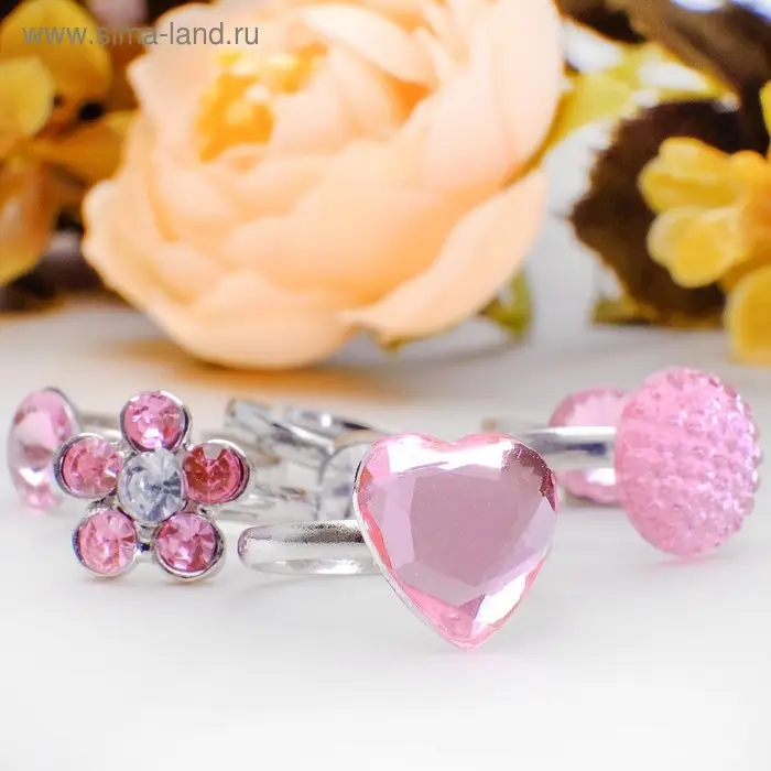 Кольцо детское «Выбражулька» ассорти для девочек, форма МИКС, цвет МИКС, безразмерное