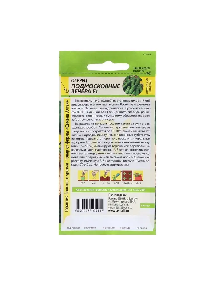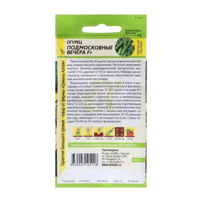 Семена Огурец "Подмосковные Вечера" F1, раннеспелый, партенокарпический, 5 шт