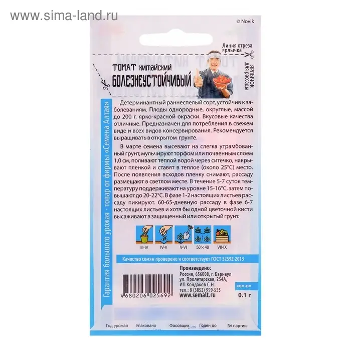 Семена Томат "Китайский болезнеустойчивый", раннеспелый, цп, 0,05 г