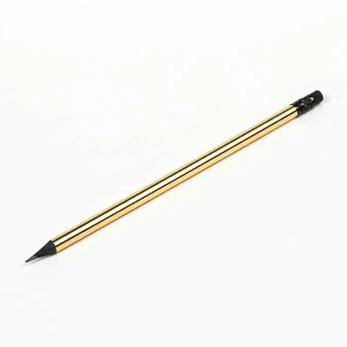 Карандаш чернографитный с ластиком, твёрдость НВ, корпус круглый, заточенный, золотистый