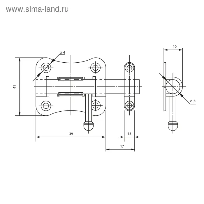 Задвижка дверная ЗД 007, 40 мм, черная